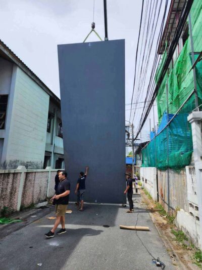 Examples of huge FRP / GRP Workpieces by using a crane to lift and install assembly on the site